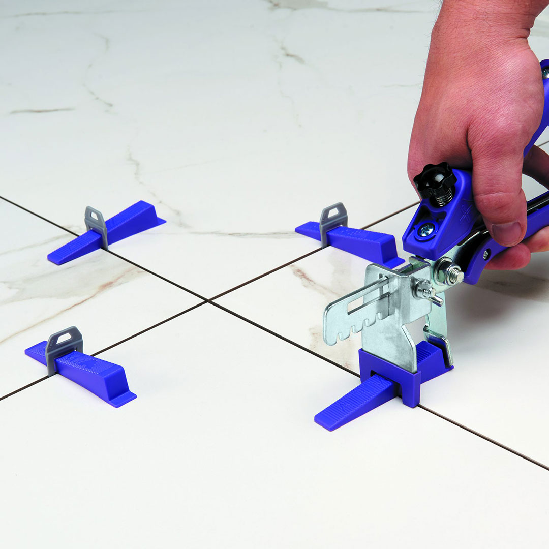 Nivela cerámicos de entre 7 mm a 17 mm de espesor como entablonados símil madera, placas de hasta 90 cm x 90 cm, cerámicos y revestimientos de pared.